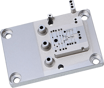 4.技术难点:凸台外形尺寸±0.02mm,八个小孔公差+0.01mm,位置度±0.01mm
